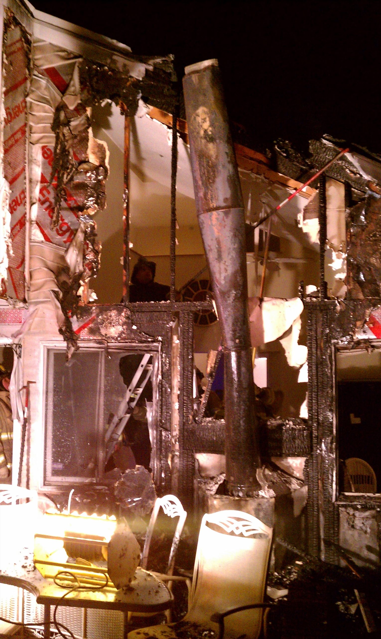 A fire destroyed the rear of an end unit townhome on April 4, 2011. When firefighters arrived at the early morning blaze in the 200 Block of Michelle Court, Creekside the rear of the home was involved with fire. Firefighters from Mill Creek Fire Company, Cranston Heights and Aetna were originally dispatched to the alarm at 2:13 AM. The alarm was upgraded and additional fire companies were dispatched. Firefighters made a quick attack on the fire and kept the flames from spreading to neighboring units. Occupants were home asleep when they were awaken by the fire. No one was injured and firefighters cleared the scene just before 4:00 AM. The Delaware State Fire Marshal’s office is investigating the cause of the fire.