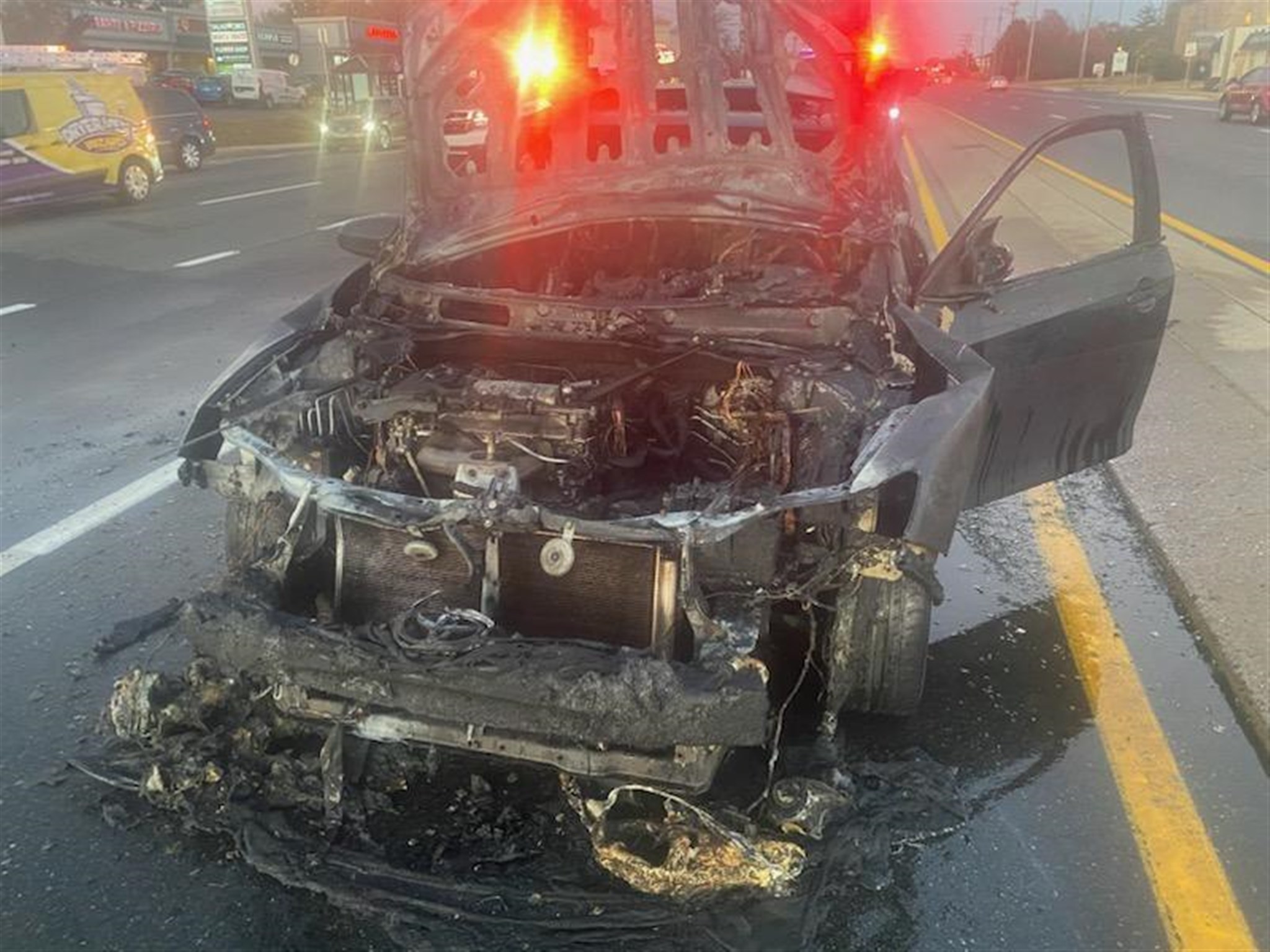 November 7, 2024 – Mill Creek Fire Company was dispatched to a vehicle fire in the 4500 block of Kirkwood Highway (Rt 2) at 4:40 PM. Firefighters arriving on the scene found the vehicle fully engulfed in fire. Traffic along Kirkwood Highway was detoured as firefighters worked to extinguish the fire and keep everyone safe.